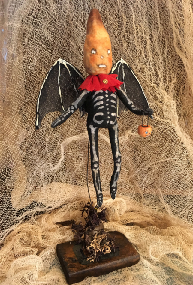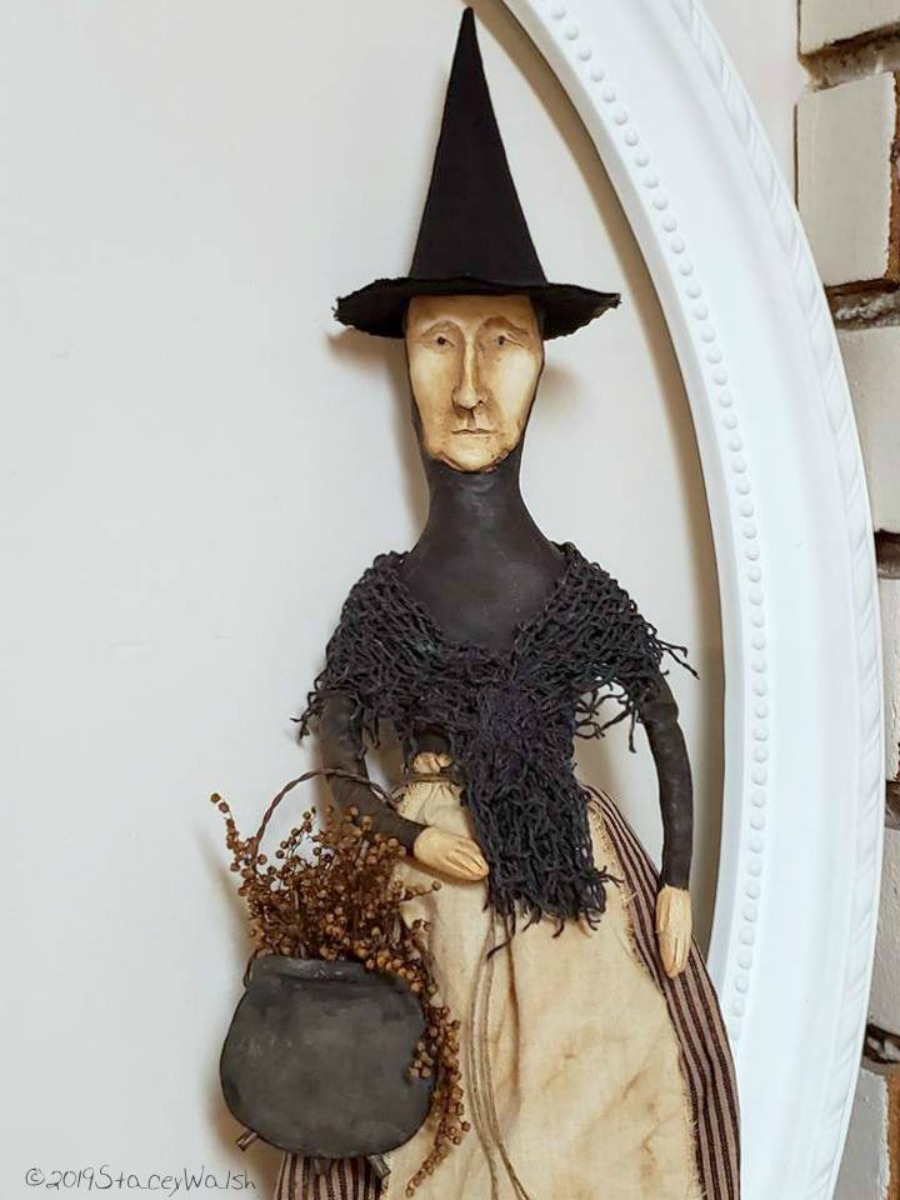 features a 14” tall Pumpkin head Mama with woven hat, a