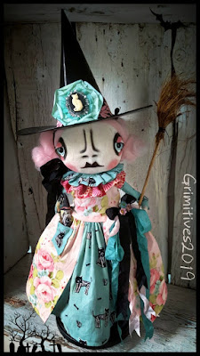 Witch Kitty Boo Binx measures about 17 inches, from her witch's hat to her doll base.