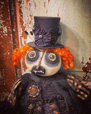 Witch H. Conica, is an original soft sculpture doll. She a sweet little thing and is made of hand dyed cloth and has a sculpted fabric mushroom hat.